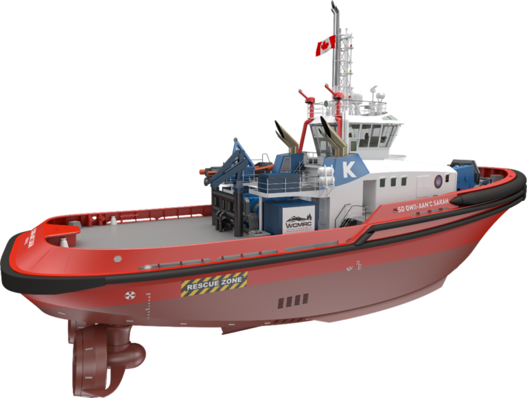 These two innovative tugs, to be named SD Aisemaht and SD Qwii-Aan’c Sarah in honor of the Sc’ianew First Nation, are scheduled to be the world’s first large purpose-built high bollard pull methanol fueled tugs when they enter service in 2025 and will reduce greenhouse gas (GHG) emissions and underwater radiated noise.
