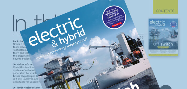 Share LinkedIn Twitter Facebook Email January 2024 The January 2024 issue is now available online! Packed full of news, interviews and features, including: Cover story: Offshore charging Offshore charging systems may be in their infancy, but with continued development and collaboration, workable and practical solutions away from port could soon become a reality Molten salt reactors Often touted as key to a new generation of onboard power generation, molten salt reactors are still at an early stage of development. E&H Marine delves into some of the key issues still to be fully explored Preview: Electric & Hybrid Marine Expo North America 2024 North America’s leading exhibition for marine electrification, decarbonization, future fuels and low-carbon shipping solutions heads to the Golden State. Find out everything you need to know about this cutting-edge event Wind-assisted propulsion Renewable and free, wind power looks set to play an important role in future decarbonization strategies. E&H Marine rounds up some of the latest wind-assisted propulsion vessel projects Case study: Artemis EF-24 Inside Artemis Technologies’ electric foiling ferry project – a vessel which requires thinking outside of established design norms Hydrogen infrastructure roundup With hydrogen likely to be key to marine decarbonization solutions, attention must be given to provision on land as well as technologies on board