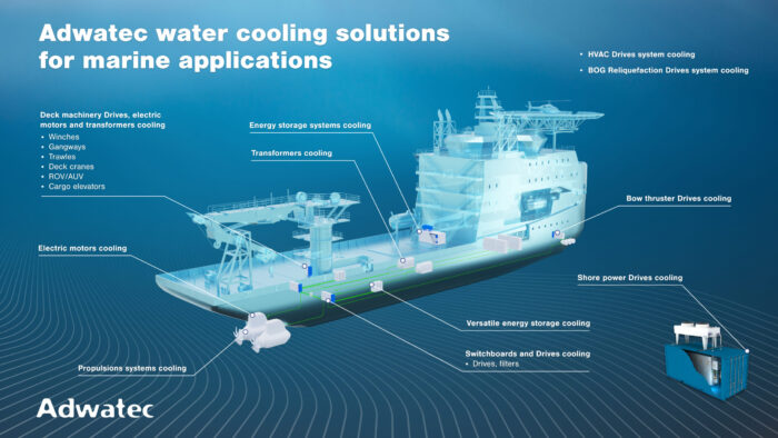 Our mission is to boost Sustainability in our products, operations and customer's applications. In order to achieve this our deep knowledge of various customer applications is essential and we are not afraid to share the cooling aspects in these. Adwatec products are modular which allows us to customize the cooling solutions to customer specific application needs. Standard modules in high volumes, small size and low maintenance result in competitive lifecycle costs. Adwatec products installed onboard more than 500 vessels globally is a reference that we are truly proud of!
