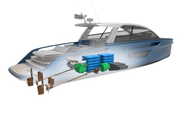 57ft luxury yacht with shaft hybrid propulsion system